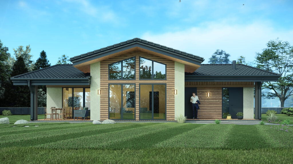 - Кровля: Фальцевая или гибкая черепица на выбор — современное решение для надежной защиты дома и стильного внешнего вида.