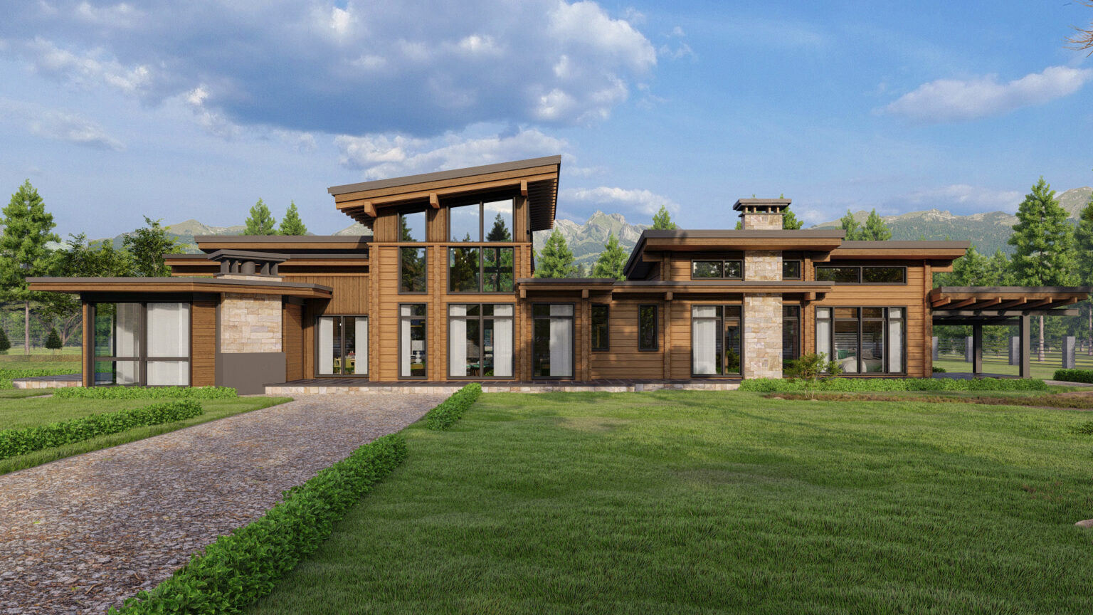- Архитектура: сочетание скатной и плоской кровли придаёт дому современный и выразительный облик.