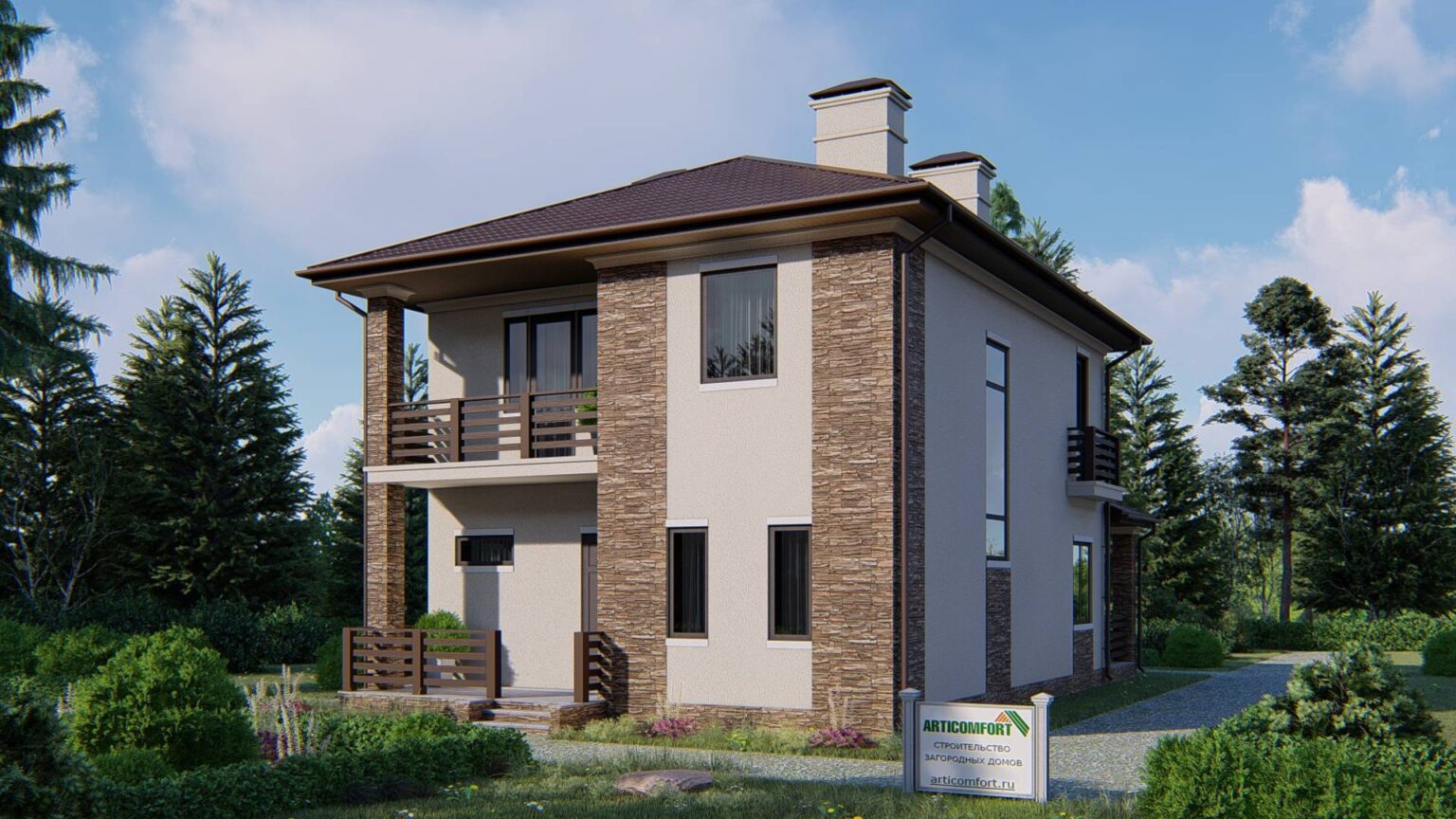 Планируете строительство двухэтажного дома из газобетона? В проекте дома Александрово предусмотрены три спальни, гостинная комната – 24 м2, кухня – 12 м2, крыльцо и терраса на которой можно вечером встретить закат.